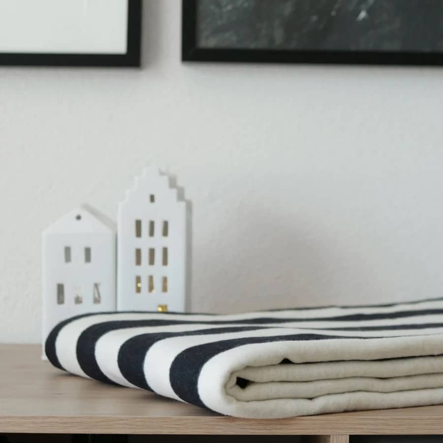 06/12/2025Kuscheliges Plaid SVEA in Schwarz-Weiß mit Streifen. Von RIEMA, Deutschland.